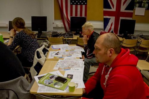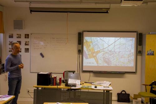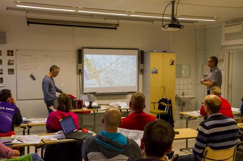 Tapio Tahkola opasti muutamaa innokasta kuulijaa kartanpiirron saloihin Kirintövaarassa parituntisessa istunnossa. Koulutuksen aikana harjoiteltiin käyttämään OCAD-kartanpiirto-ohjelmaa sekä muita tarvittavia apuohjelmia. Näillä opeilla päästiin taas eteenpäin kartan valmistuksessa.